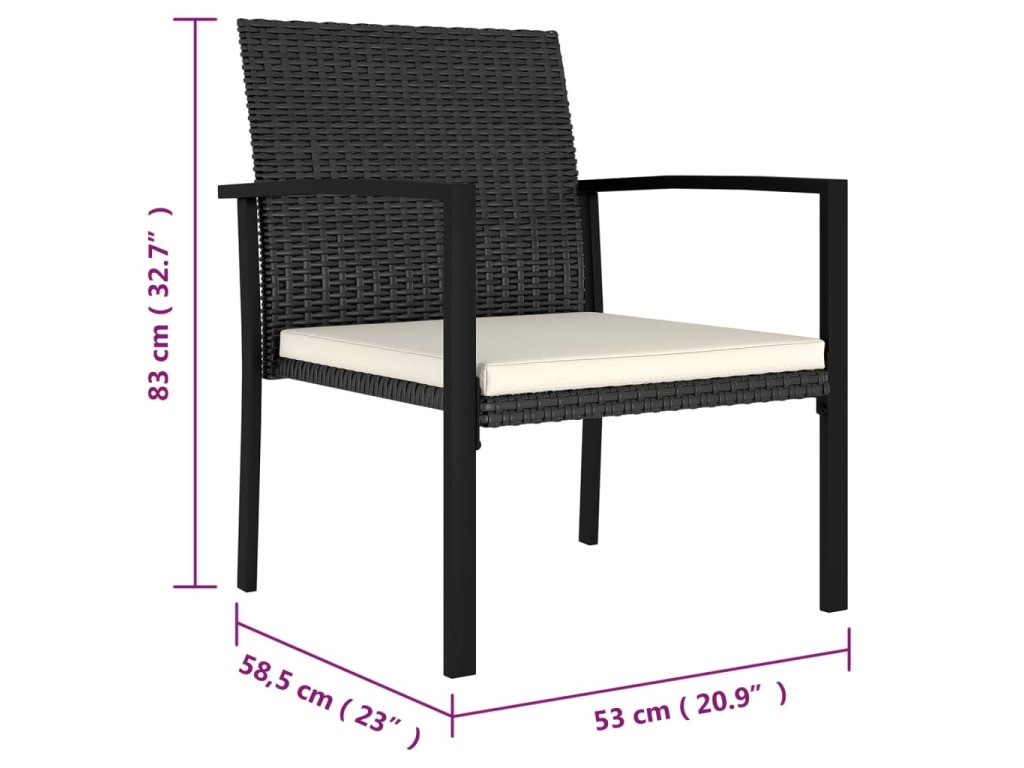 Jídelní židle jsou zhotovené z klimaticky odolného PE ratanu, který je napletený na robustní ocelový rám. Zahradní židle jsou stabilní, mají dlouhou životnost a jsou vhodné pro venkovní použití. Dodané podušky přispívají k dalšímu pohodlí při sezení. Židle mají lehkou konstrukci, a tak je snadné je přenášet podle vašich potřeb.