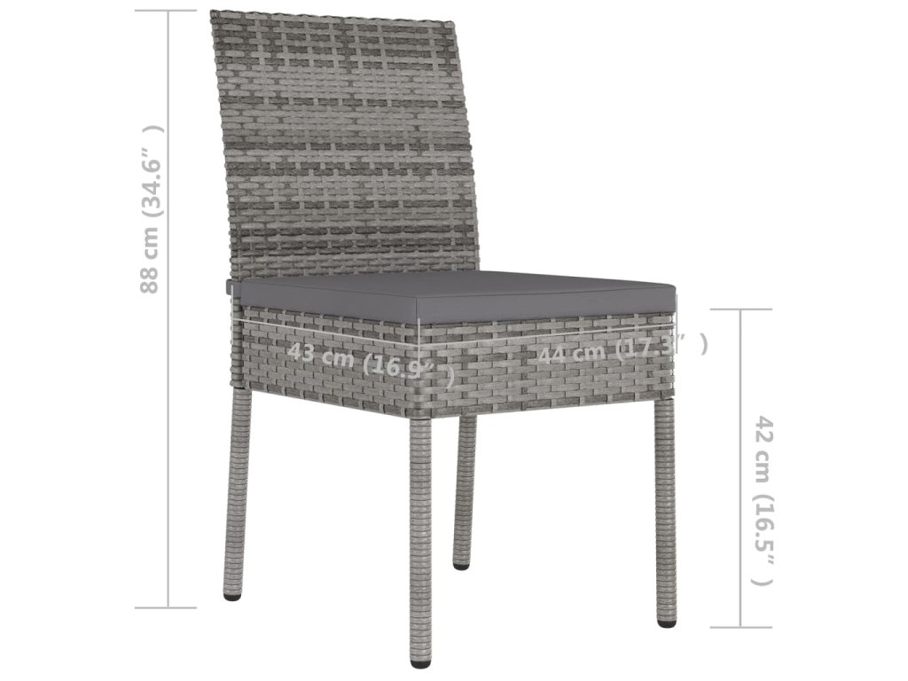 Zahradní židle je vyrobená z polyratanu, a proto je odolná vůči klimatickým vlivům a snadno se čistí. Černé, práškově lakované ocelové rámy jsou stabilní a mají dlouhou životnost. Konstrukce židlí je lehká, takže je můžete snadno přemísťovat, a navíc je vhodná pro venkovní použití. Dodané podušky na sedák navíc poskytuje další pohodlí při sezení.