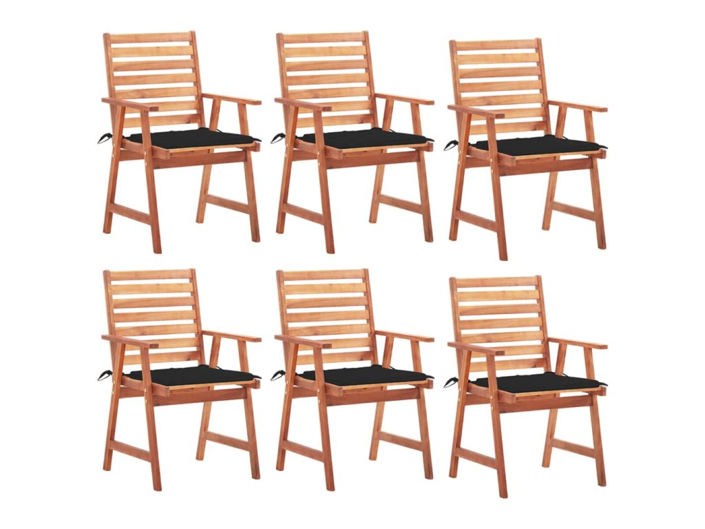 Tato moderní sada dřevěných jídelních židlí s poduškami dodá vaší zahradě, terase či dvorku nádech přírodního stylu. Představuje skvělou volbu pro stolování na čerstvém vzduchu.
