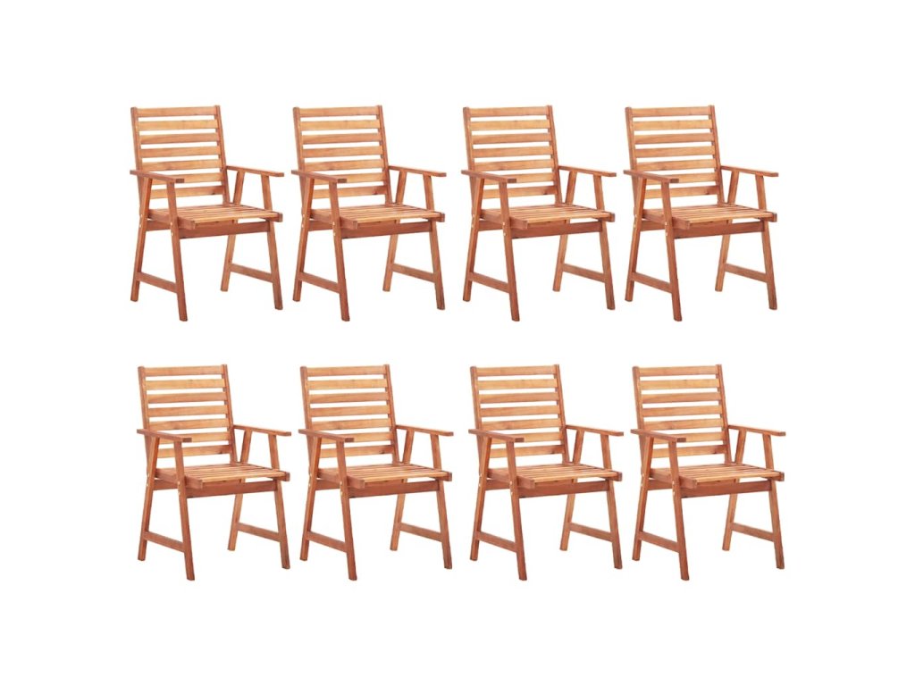 Tato moderní sada dřevěných jídelních židlí s poduškami dodá vaší zahradě, terase či dvorku nádech přírodního stylu. Představuje skvělou volbu pro stolování na čerstvém vzduchu.