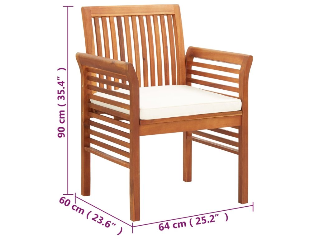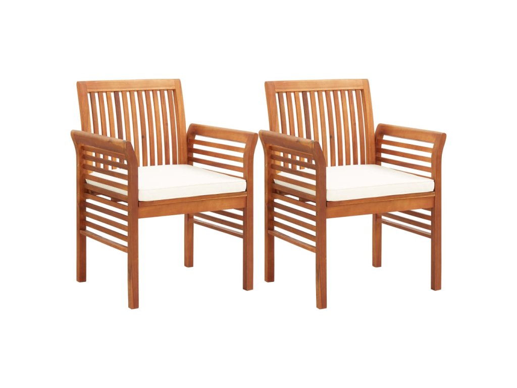 Tyto židle z dřevěným rámem z klimaticky odolné akácie s sebou na vaši terasu či zahrádku přinesou stylový vzhled a vaše venkovní bydlení oživí svým přírodním šarmem. Pohodlně se usaďte a relaxujte, v našich komfortních židlích s hlubokými sedáky a měkkými pěnovými poduškami si můžete užívat odpočinek po dlouhé hodiny. Voděodolné podušky se snadno čistí. Sestavení židlí je snadné.