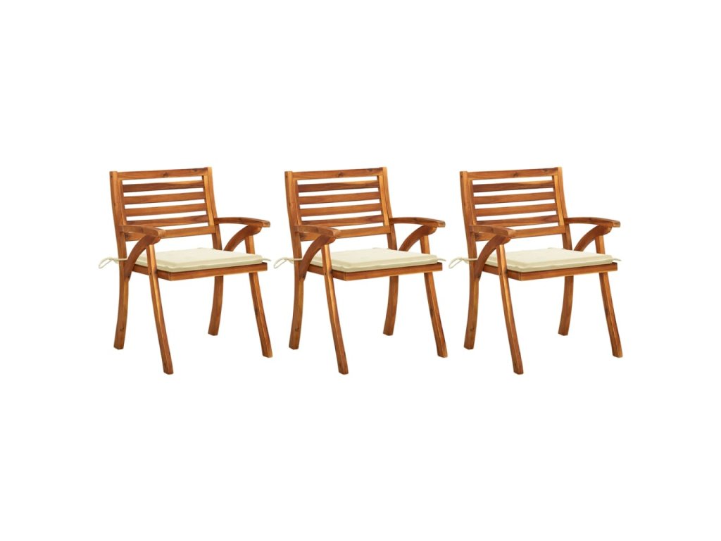 Uvelebte se na těchto jídelních židlích z masivního akáciového dřeva a dopřejte si příjemnou večeři pod širým nebem nebo jen tak odpočívejte a užívejte si krásného počasí.