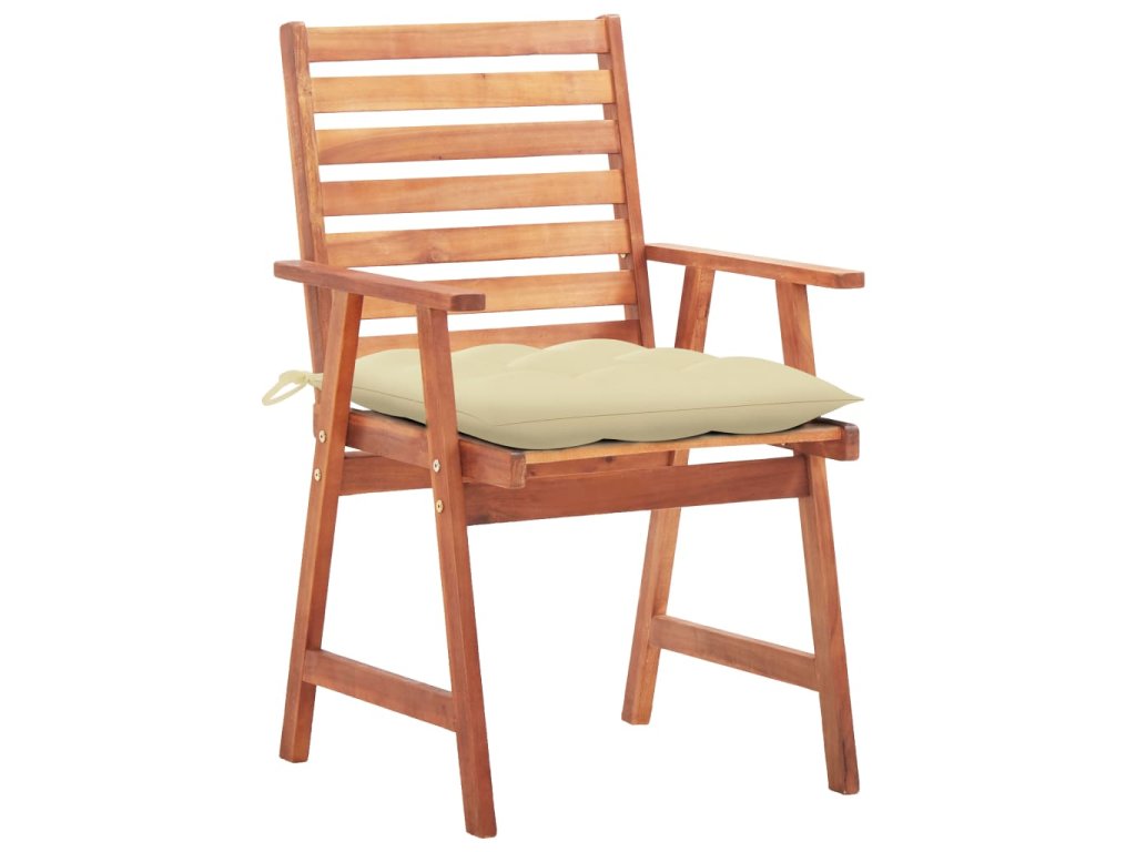 Tato moderní sada dřevěných jídelních židlí s poduškami dodá vaší zahradě, terase či dvorku nádech přírodního stylu. Představuje skvělou volbu pro stolování na čerstvém vzduchu.