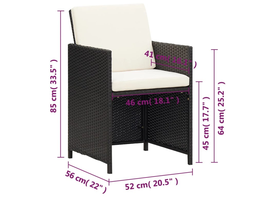 - Rozměry podušky na sedák/opěradlo: 46 x 41 x 5 cm (Š x H x T)