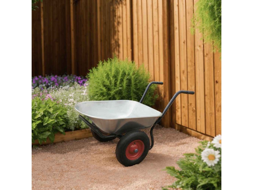 Toto dvoukolové kolečko má silný ocelový rám, který zajišťuje podporu a stabilitu. Pozinkovaná korba neboli vana na náklad je odolná vůči rzi a má kapacitu až 66 l. Kolečko je vybavené se dvěma pneumatickými koly a velmi dobře se převáží.