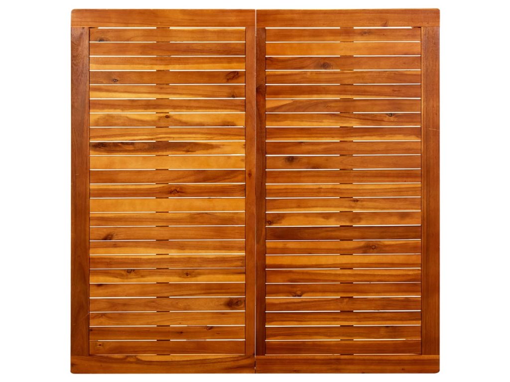 Stolek je vyrobený z masivního akáciového dřeva ošetřeného přírodním olejem, výborně proto vzdoruje klimatickým vlivům a má dlouhou životnost. Každá fáze výrobního procesu je prováděná s mimořádnou péčí, ať už se jedná o leštění nebo lakování. Robustní stolní deska s laťkovým designem nabízí šikovnou plochu, kam si můžete položit občerstvení, košíky s ovocem, různé dekorace a mnoho dalšího.