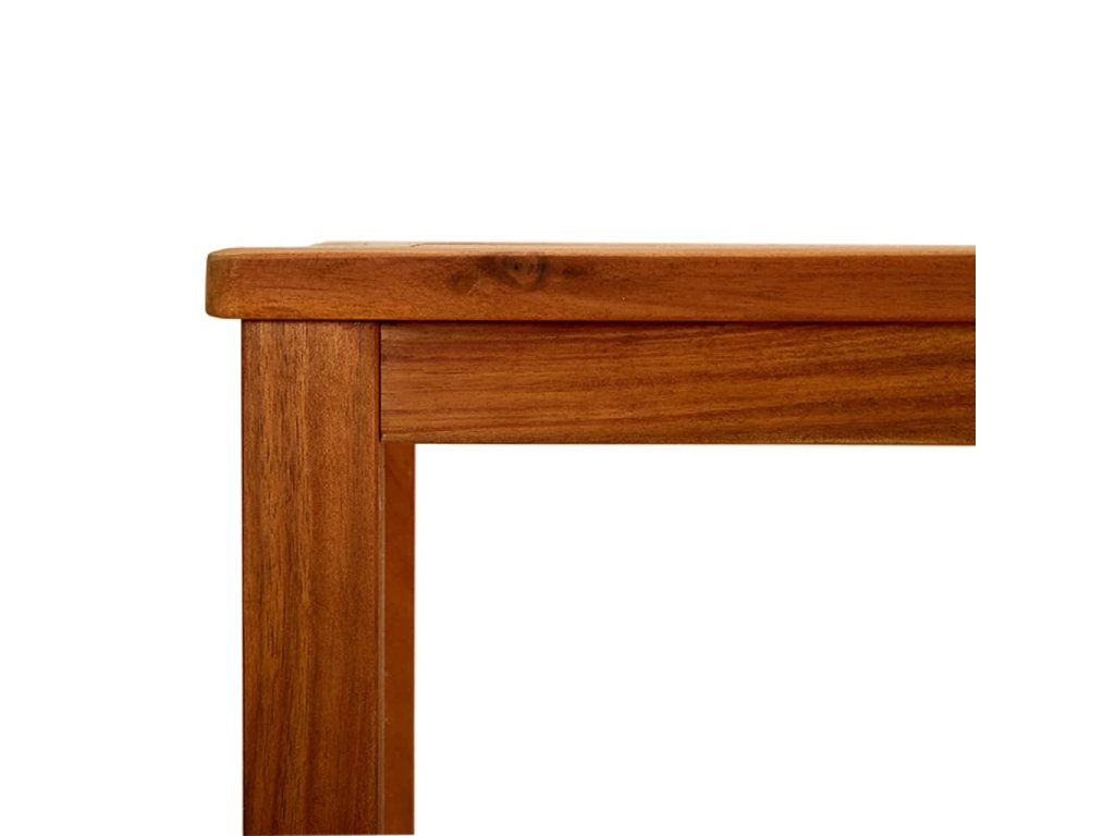 Zahradní stolek je vyrobený z masivní akácie, což je tvrdé dřevo s hustou strukturou. Pyšní se nejen překrásným designem, který zaujme na první pohled, ale také výtečnou stabilitou a odolností. Vynikající řemeslné zpracování a nádherná kresba dřeva od sebe jednotlivé kusy nábytku mírně odlišují. Venkovní stůl má spodní polici, která poskytuje další prostor pro uložení vašich věcí.