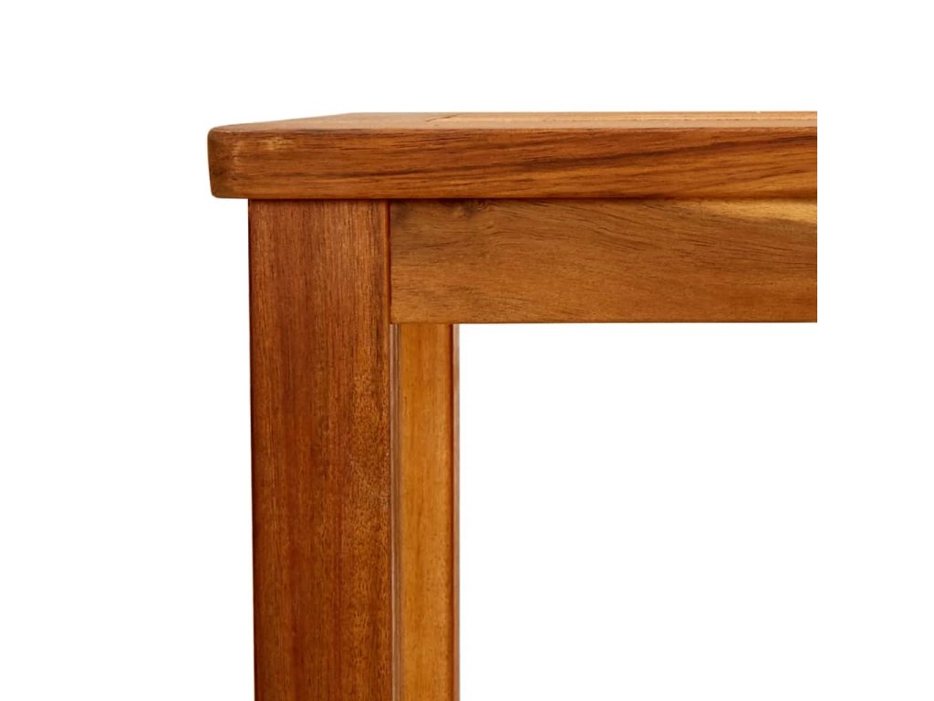 Zahradní stolek je vyrobený z masivní akácie, což je tvrdé dřevo s hustou strukturou. Pyšní se nejen překrásným designem, který zaujme na první pohled, ale také výtečnou stabilitou a odolností. Vynikající řemeslné zpracování a nádherná kresba dřeva od sebe jednotlivé kusy nábytku mírně odlišují. Venkovní stůl má spodní polici, která poskytuje další prostor pro uložení vašich věcí.