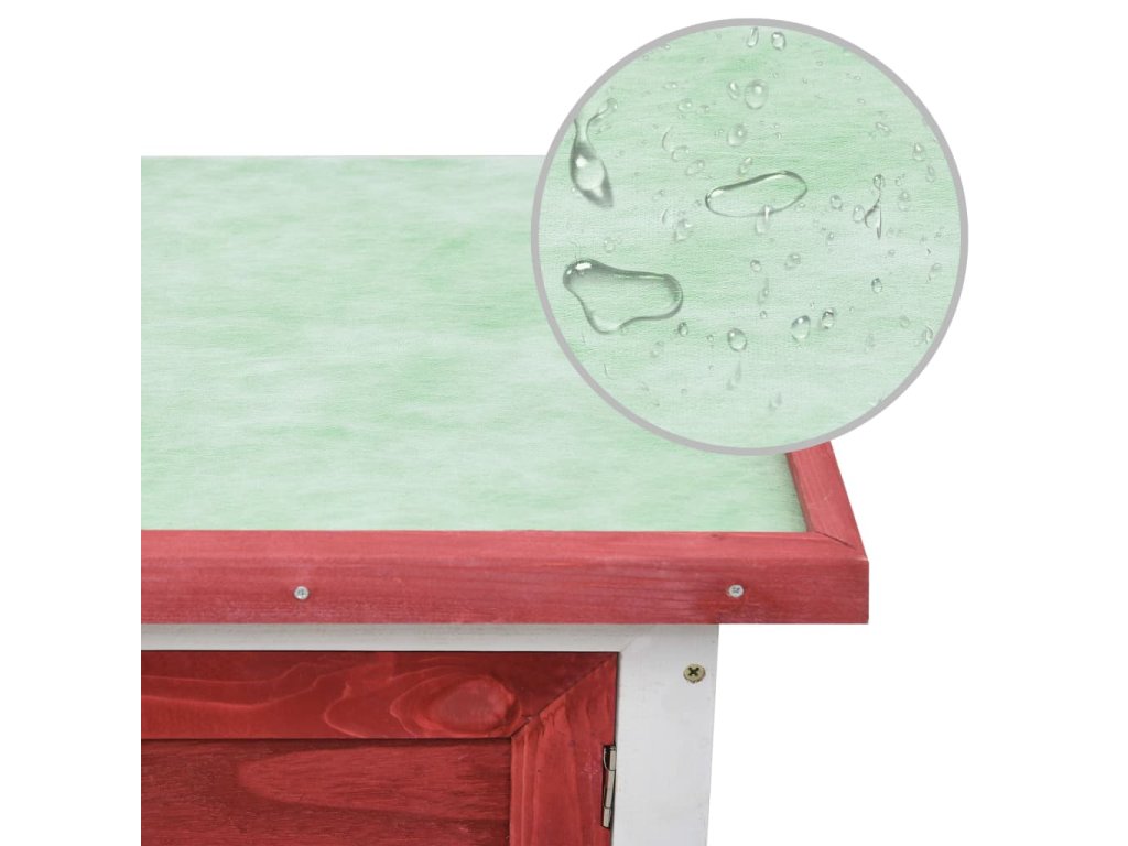 Králíkárna je vyrobena z vysoce kvalitního dřevěného rámu, takže poskytuje pevné a bezpečné přístřeší, které vydrží sloužit dlouhé roky. Její zelená asfaltová střecha nepropouští déšť a útulný pelíšek uvnitř je skvělý na spaní. Střechu můžete otevřít, abyste své domácí mazlíčky mohli snadno vyjmout nebo vrátit zpět. Výsuvný zásobník usnadňuje čištění. Dvířka se snadno zavírají a lze je zajistit posuvnou západkou.
