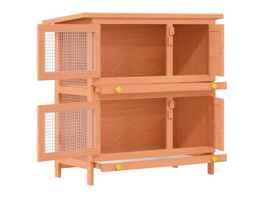Tato kvalitní dvoupatrová králíkárna poskytuje velké útulné místo pro chov malých zvířat, zejména roztomilých králíčků. Má několik způsobů využití: hraní, pohyb, trénink nebo bezpečný pobyt vašich zvířat.