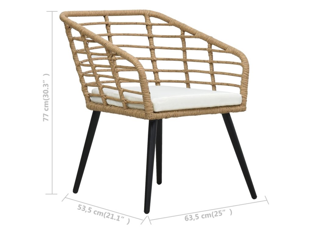 Tento set křesel má robustní ocelový rám pokrytý klimaticky odolným PE ratanem, který výborně vzdoruje korozi a plísním, a proto je vhodný pro venkovní použití. Tento set designovaný se zaobleným opěradlem má ergonomičtější tvar pro maximální pohodlí. K vašemu komfortu přispějí také vysoce pohodlné podušky na sedák s hustým polstrováním.