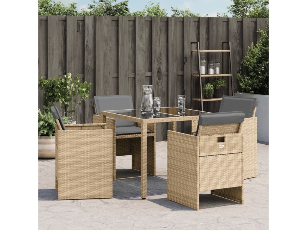 - Odolný materiál: PE ratan neboli polyratan je pevný syntetický materiál s nízkými nároky na údržbu, který vypadá jako přírodní ratan. Je lehký, snadno se čistí a běžně se používá pro venkovní nábytek díky své dlouhé životnosti a odolnosti vůči povětrnostním vlivům.