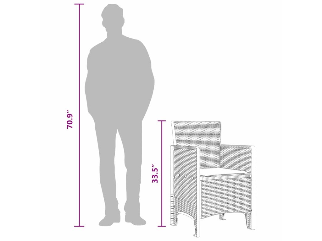 - Vzhled ratanu: Židle má elegantní vzhled ratanu a dodává kousek elegance do každého venkovního prostředí. Snadno zapadne do zahrad a teras a přidá třídu bez nutnosti velké údržby.