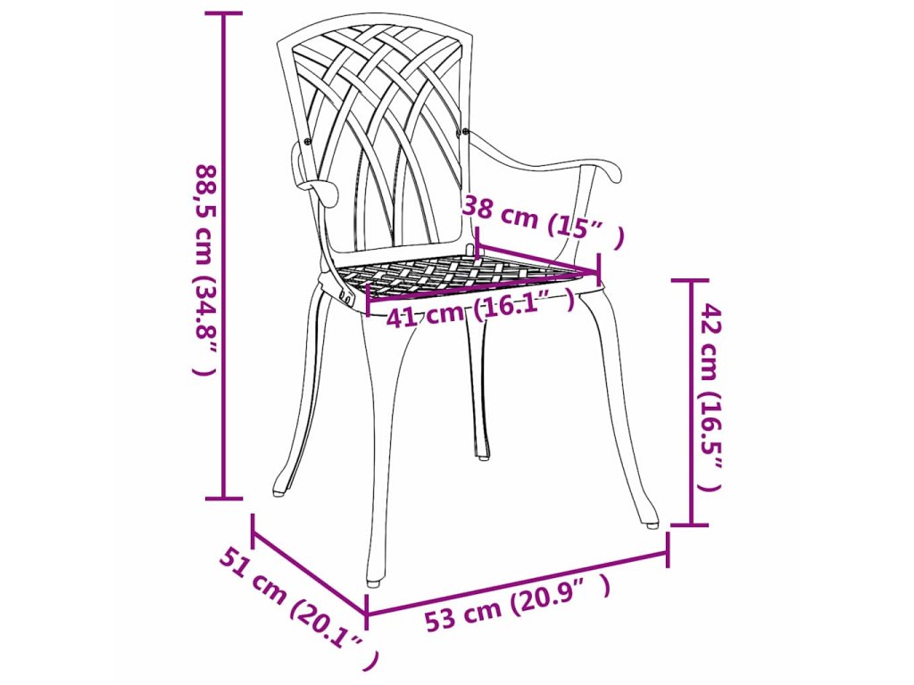 - Hliníková konstrukce: Tato židle je celá z hliníku, takže je lehká, ale pořád silná. Odpovídá každému počasí, takže si zachovává skvělý vzhled za všech podmínek.