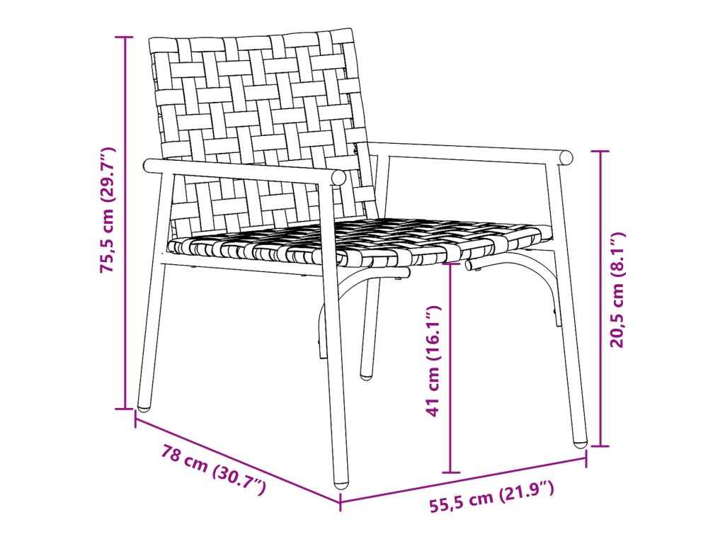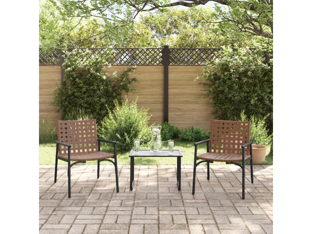 Tato sada venkovních jídelních židlí spojuje moderní vzhled s praktičností a poskytuje ideální místo pro venkovní stolování. S bohatým hnědým ratanem a elegantním černým kovovým rámem, tyhle židle snadno vylepší jakoukoli venkovní plochu a vytvoří příjemné místo pro relaxaci při užívání čerstvého vzduchu.
