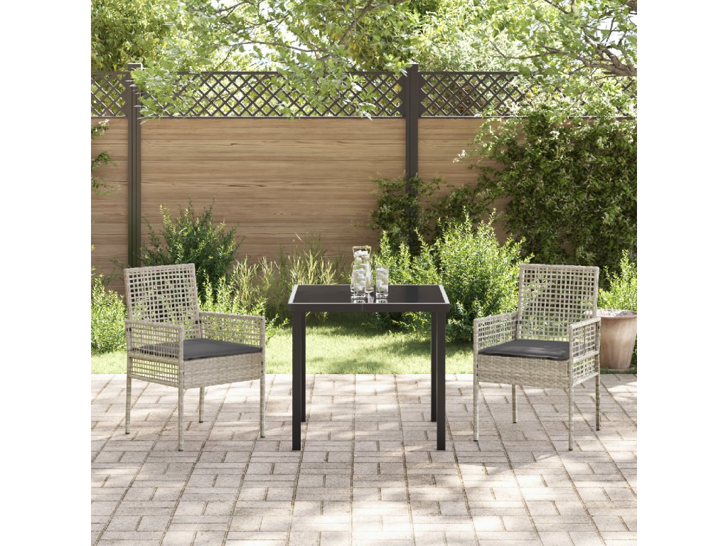 Tato sada venkovních jídelních židlí je ideální pro každej balkon nebo terasu. Vyrobené z pevnýho syntetickýho ratanu a oceli, ti přináší jak odolnost, tak styl. Světle a tmavě šedé odstíny dodávají šmrnc do každého venkovního prostoru. Užij si pohodlné jídlo nebo relax ve stylovém venkovním prostředí.