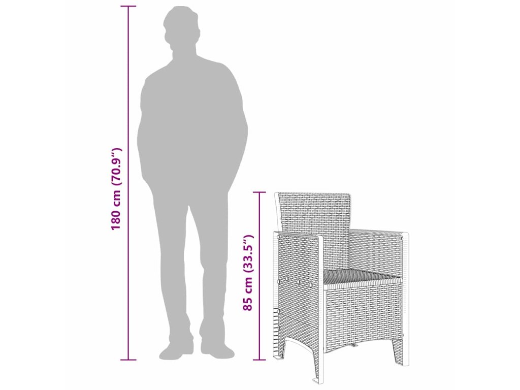 - Vzhled ratanu: Židle má elegantní vzhled ratanu a dodává kousek elegance do každého venkovního prostředí. Snadno zapadne do zahrad a teras a přidá třídu bez nutnosti velké údržby.