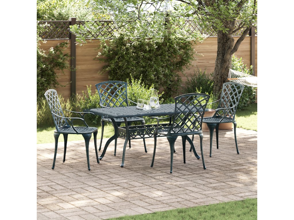Toto venkovní sezení chce dodat moderní nádech a pohodlí vaší zahradě nebo terase. Jasně zelené židle kombinují styl a praktičnost – parádní na venkovní setkání nebo klidné večery s knížkou.