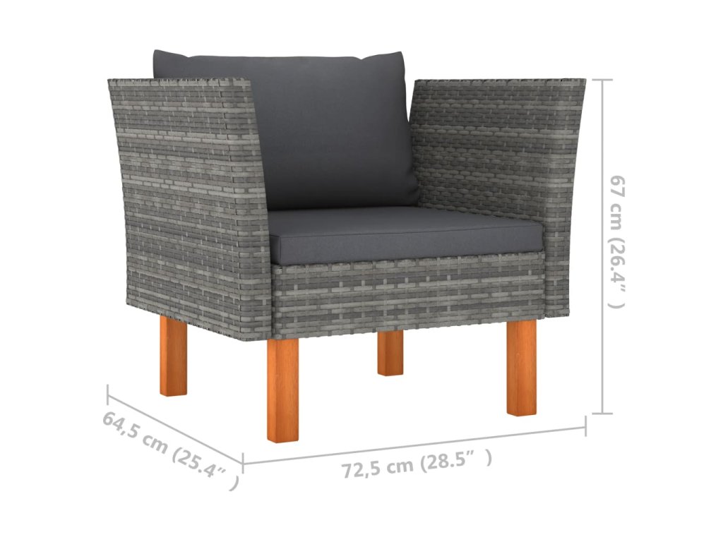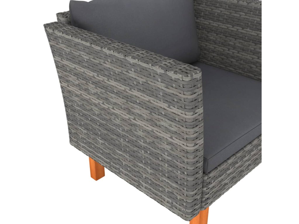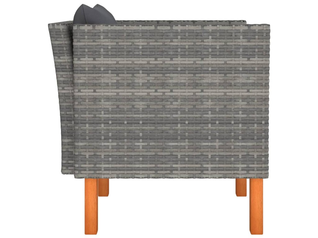 - Materiál: PE ratan, práškově lakovaná ocel, masivní eukalyptové dřevo s olejovaným povrchem
