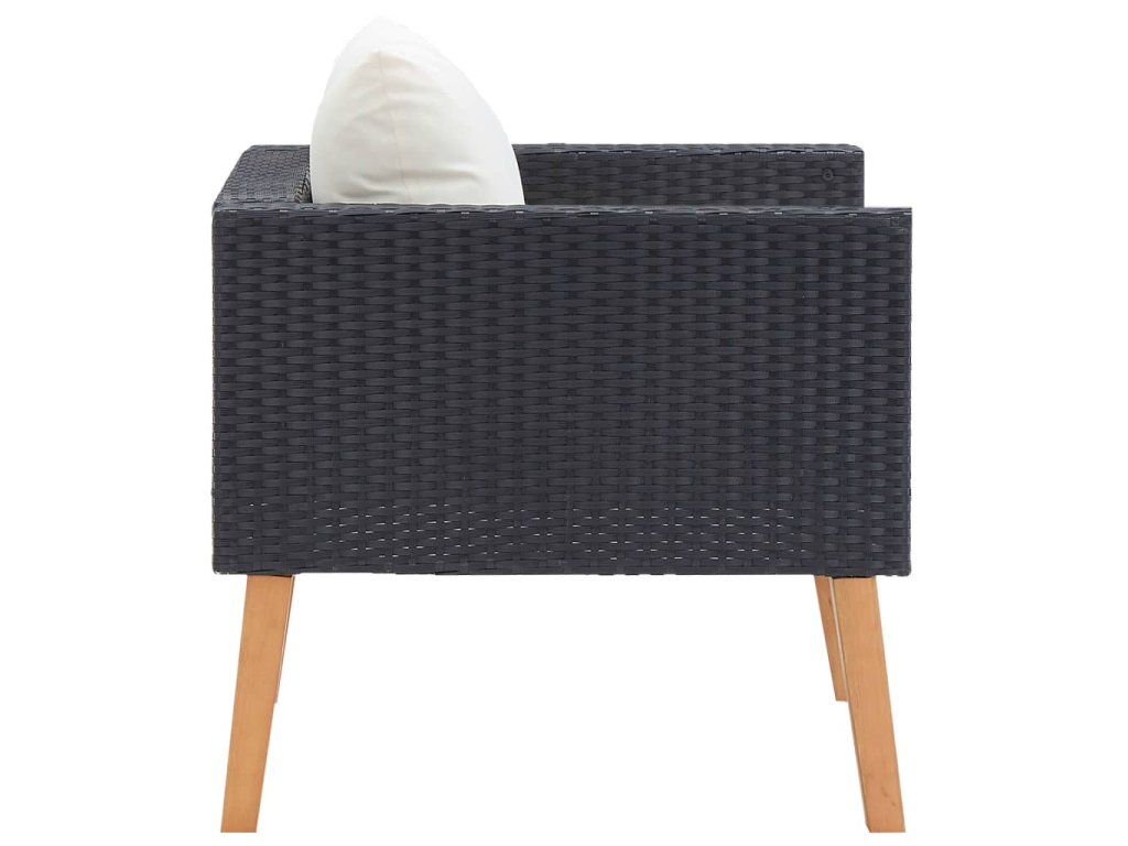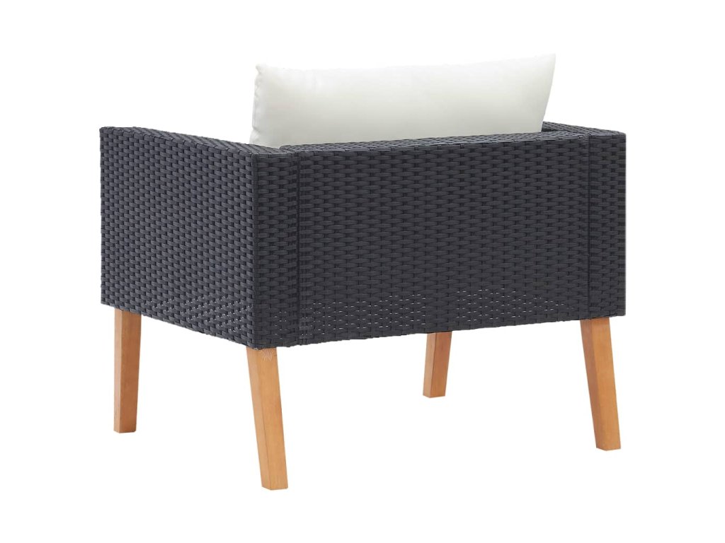 - Materiál: PE ratan, práškově lakovaná ocel, textil (100% polyester), eukalyptus s povrchem, který vypadá jako teak