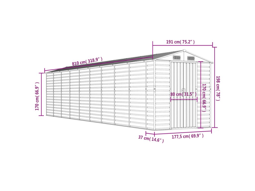 - Dostatek úložného prostoru: Tato kovová kůlna poskytuje dostatek prostoru pro uložení palivového dřeva, zahradního nářadí, nábytku, vybavení a dalších věcí.