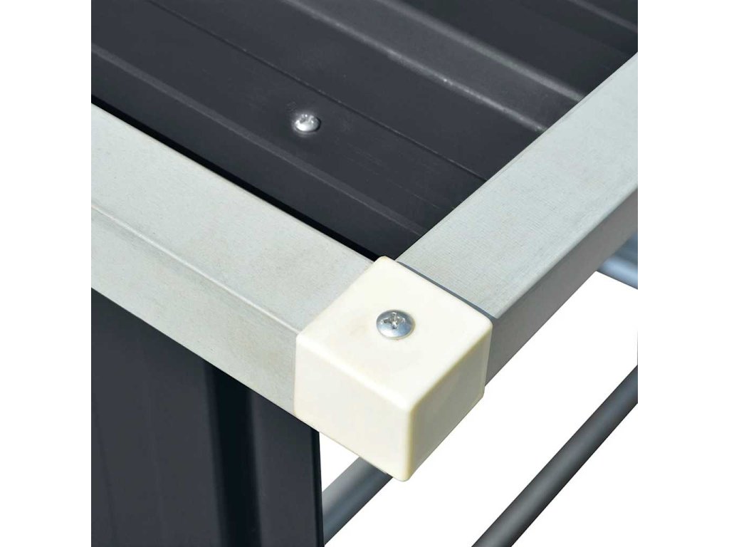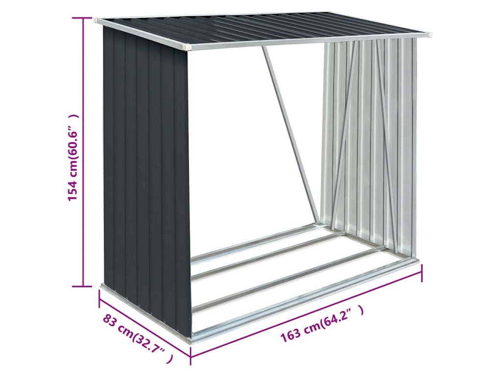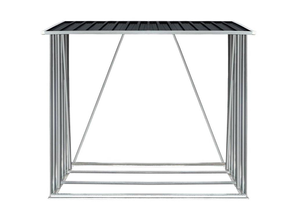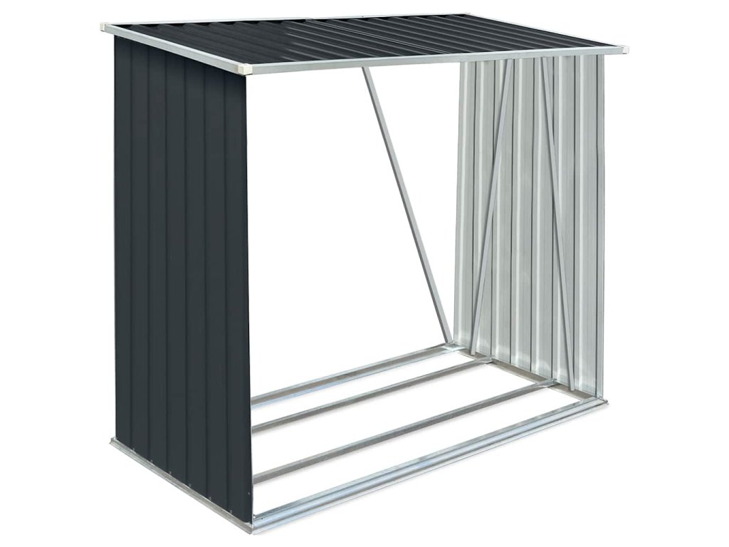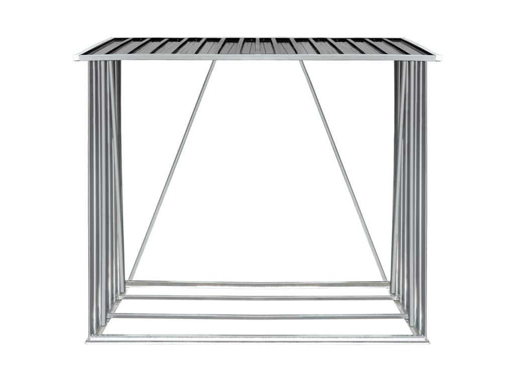 Má stabilní konstrukci s ocelovými nosnými tyčemi a přídavnými trubkami na obou stranách. Díky tomu, že je vyroben z pozinkované oceli, vyžaduje skladovací domek na dřevo minimální údržbu a je velmi odolný. Tento skladovací domek na dřevo má ocelový podlahový rám pro větší stabilitu a zvýšené podlahové latě, které udržují polena větraná a suchá. Dešťová voda bude díky šikmé konstrukci automaticky odváděna ze střechy. Náš skladovací domek na dřevo se snadno montuje.