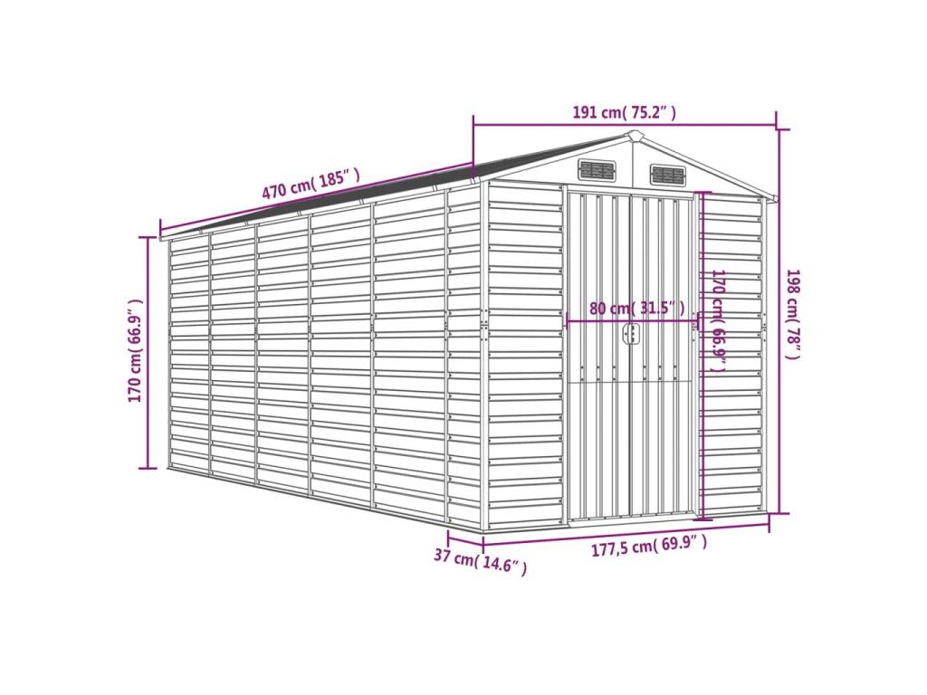 - Dostatek úložného prostoru: Tato kovová kůlna poskytuje dostatek prostoru pro uložení palivového dřeva, zahradního nářadí, nábytku, vybavení a dalších věcí.