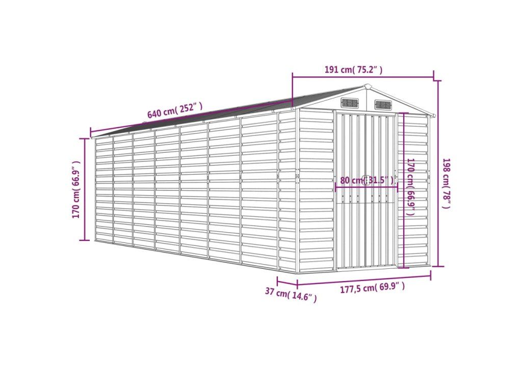 - Dostatek úložného prostoru: Tato kovová kůlna poskytuje dostatek prostoru pro uložení palivového dřeva, zahradního nářadí, nábytku, vybavení a dalších věcí.