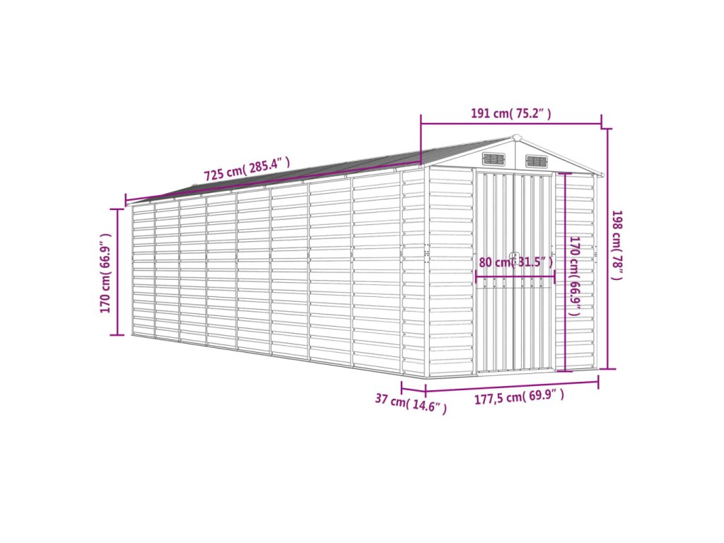 - Dostatek úložného prostoru: Tato kovová kůlna poskytuje dostatek prostoru pro uložení palivového dřeva, zahradního nářadí, nábytku, vybavení a dalších věcí.