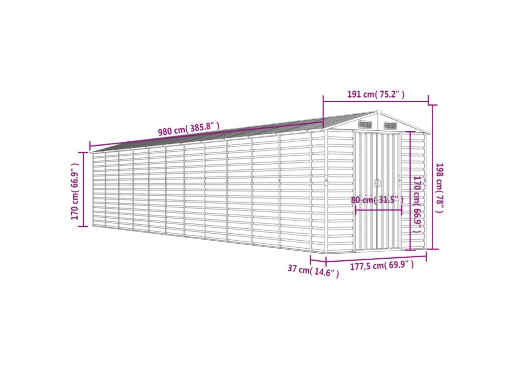- Dostatek úložného prostoru: Tato kovová kůlna poskytuje dostatek prostoru pro uložení palivového dřeva, zahradního nářadí, nábytku, vybavení a dalších věcí.