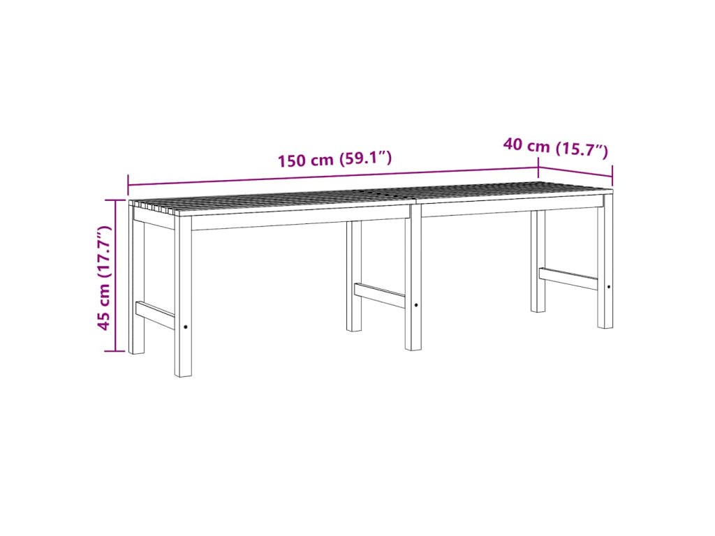 - Rozměry: 150 x 40 x 45 cm (Š x H x V)