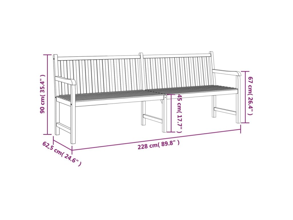 - Rozměry: 228 x 62,5 x 90 cm (Š x H x V)