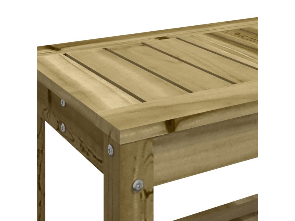 - Lamelový design: Díky lamelové konstrukci se na lavici nehromadí voda, sedák zůstává suchý a dřevo zbytečně nehnije.