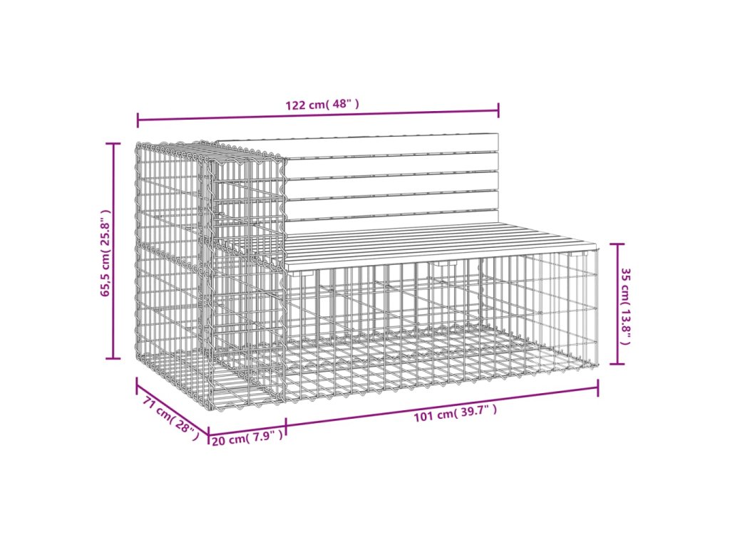 - Robustní a stabilní základna: Tato venkovní lavice je vybavena základnou z pozinkovaného ocelového gabionového koše, který je navržen tak, aby jej bylo možné naplnit kameny a štěrkem pro atraktivnější vzhled. Mřížku gabionového koše tvoří podélné a svislé drátky, které jsou navíc v každém spoji svařené pro lepší stabilitu.