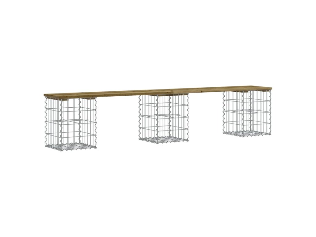 - Robustní a stabilní základna: Tato venkovní lavice je vybavena základnou z pozinkovaného ocelového gabionového koše, který je navržen tak, aby jej bylo možné naplnit kameny a štěrkem pro atraktivnější vzhled. Mřížku gabionového koše tvoří podélné a svislé drátky, které jsou navíc v každém spoji svařené pro lepší stabilitu.