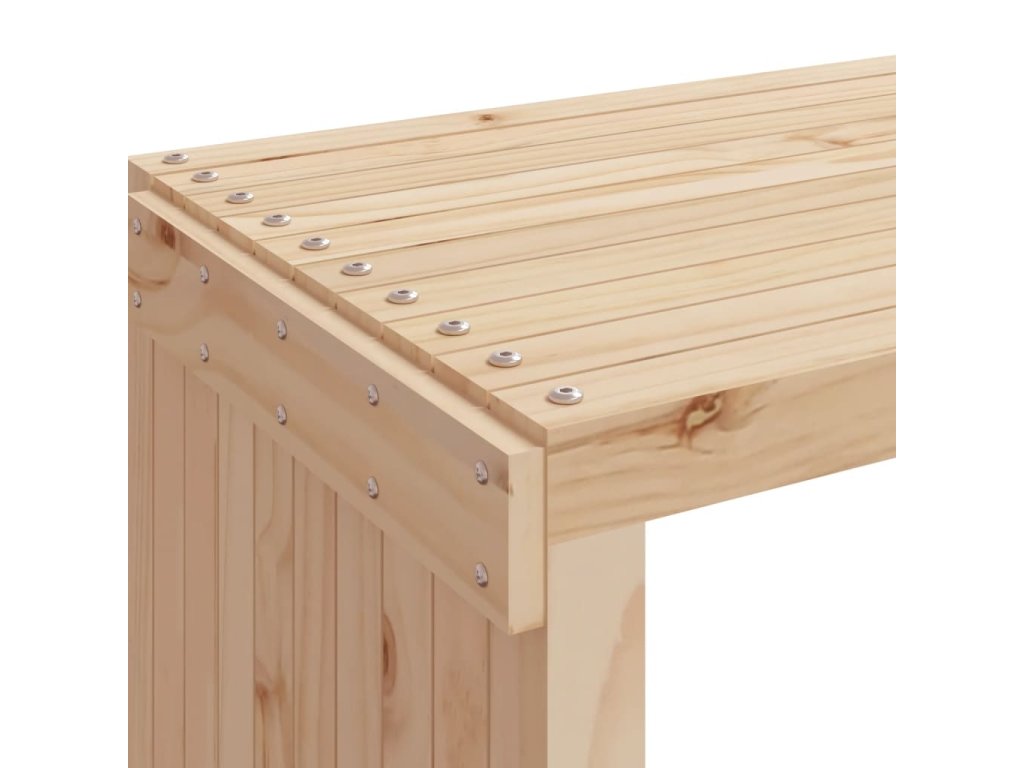 - Masivní borové dřevo: Zahradní lavice je vyrobena z masivního borového dřeva, které zajišťuje pevnost a odolnost. Masivní borové dřevo je krásný přírodní materiál. Borové dřevo má rovnou kresbu a obsahuje suky, které materiálu dodávají jeho charakteristický, rustikální vzhled.