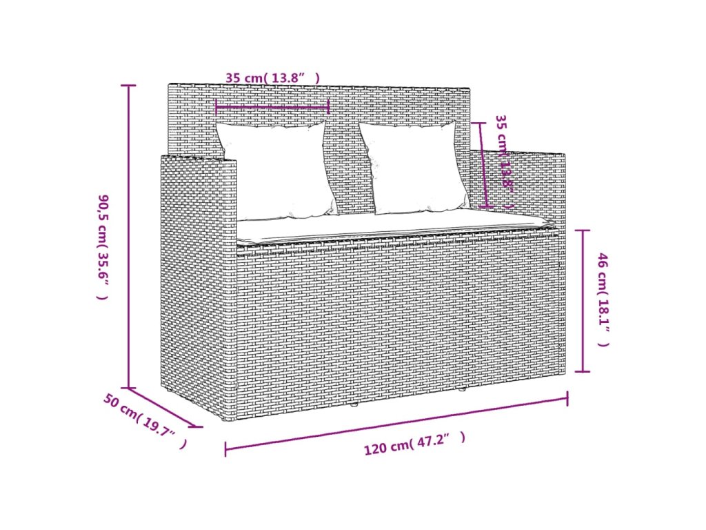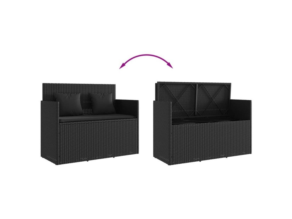 - Úložný prostor s voděodolným vakem: Zahradní nábytek má úložný prostor pod sedákem, který je opatřen voděodolnou vložkou a poslouží vám k ukládání podušek, hraček a dalších věcí. Vnitřní vak lze bezpečně připevnit k venkovnímu nábytku pomocí suchého zipu, což zaručí větší stabilitu.