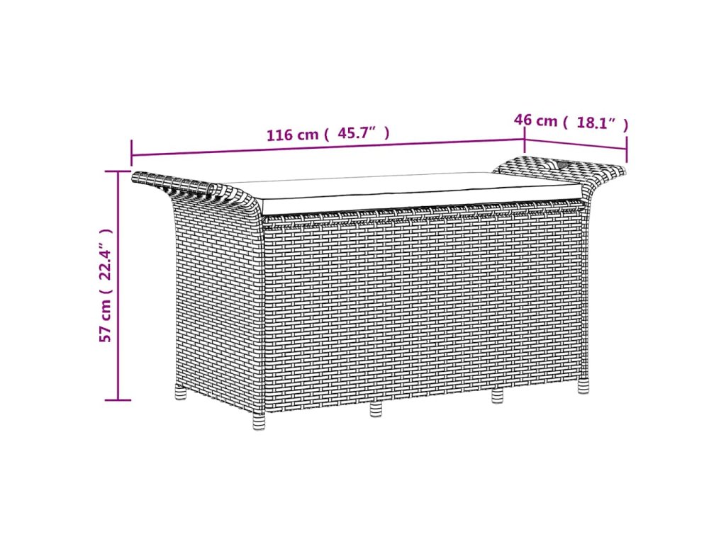 - Dostatek úložného prostoru: Zahradní posezení poskytuje dostatek úložného prostoru uvnitř, kam si můžete přehledně uložit své věci a zároveň je mít pěkně po ruce. Voděodolná PVC vložka udržuje obsah suchý. Háček pomáhá držet víko při otevírání.
