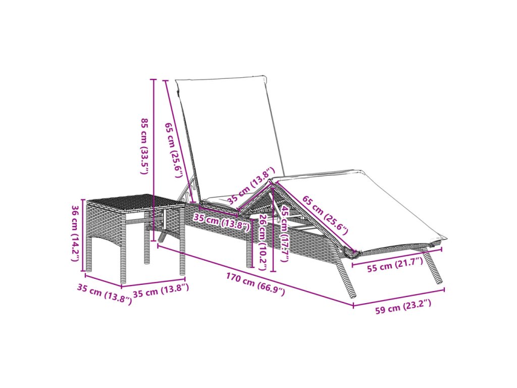 - Nastavitelné opěradlo a opěrka nohou: Tento venkovní nábytek má opěradlo se 4 nastavitelnými polohami a opěrku nohou se 3 nastavitelnými polohami, což vám umožní snadno najít nejpohodlnější a nejvhodnější polohu pro odpočinek.