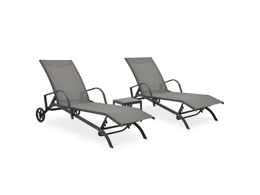 Tato sada zahradního nábytku se skládá ze 2 opalovacích lehátek a 1 čajového stolku. Výborně se hodí k opalování či relaxaci u bazénu, na terase nebo na zahradě.