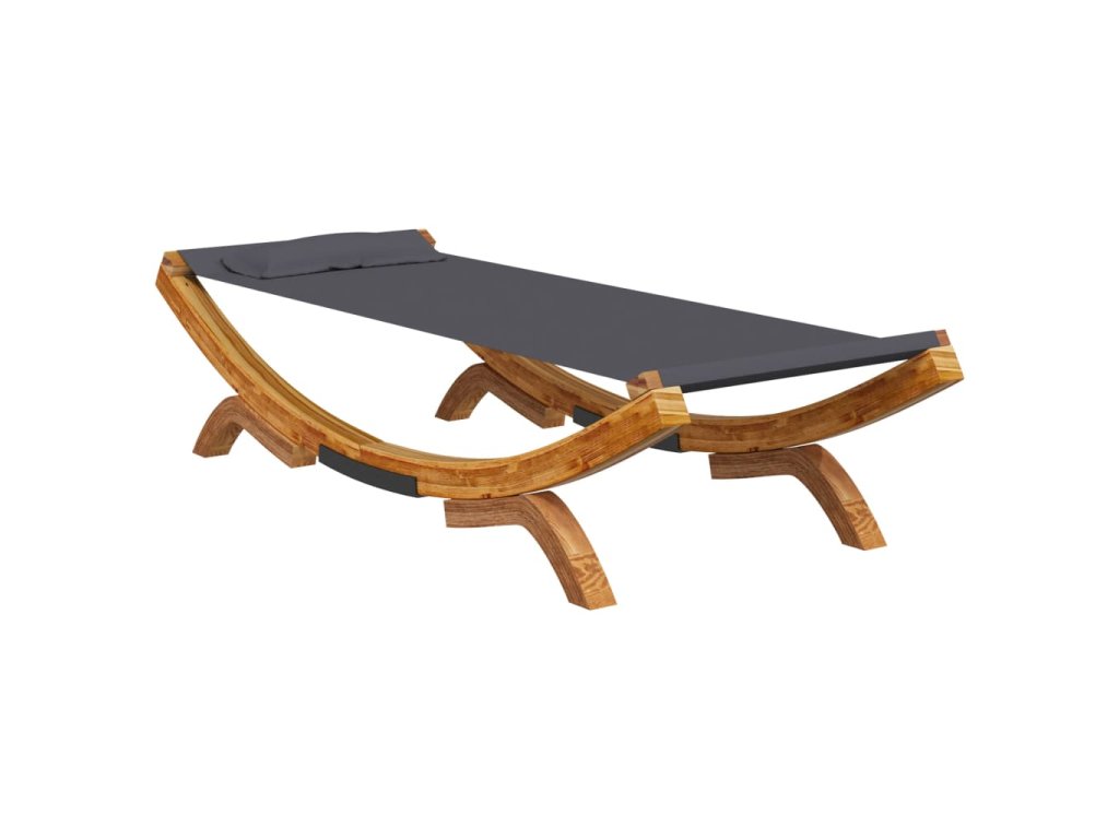 Tato zahradní postel má pevný rám z masivního ohýbaného dřeva, takže je stabilní a odolná. Lehátko a polštářek jsou vyrobené z textilu, který se snadno čistí, a je navíc velmi pohodlný.