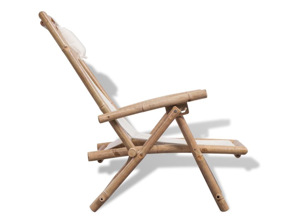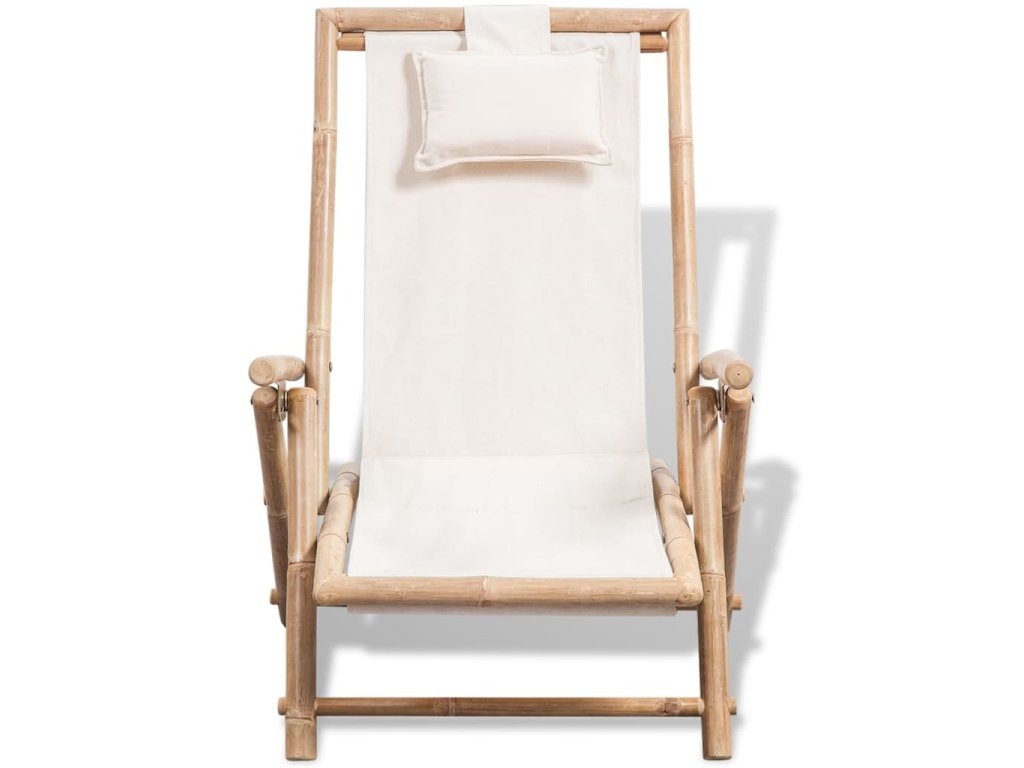 Toto opalovací křeslo z bambusu a plátna bude ideální pro relaxaci na vaší terase nebo zahradě.