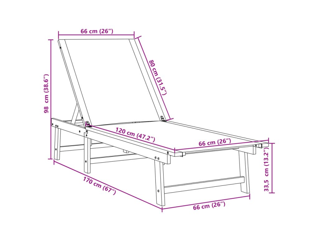 - Nastavitelné opěradlo: Toto lehátko má opěradlo s 5 nastavitelnými polohami, které vám umožní snadno najít nejpohodlnější a nejvhodnější polohu pro odpočinek.