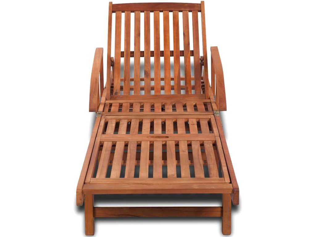 Toto lehátko je vyrobeno z trvanlivého masivního akáciového dřeva, které bylo ošetřeno přírodním olejem a vyznačuje se vynikající odolností proti povětrnostním vlivům. Proto je naše opalovací lehátko velmi vhodné pro venkovní použití. Protože je opatřeno dvěma koly, lze je snadno přesouvat. Lehátko se může pochlubit pohodlným vytahovacím stolkem, na který si můžete odložit telefon, sluneční brýle, nápoje a další drobné předměty.