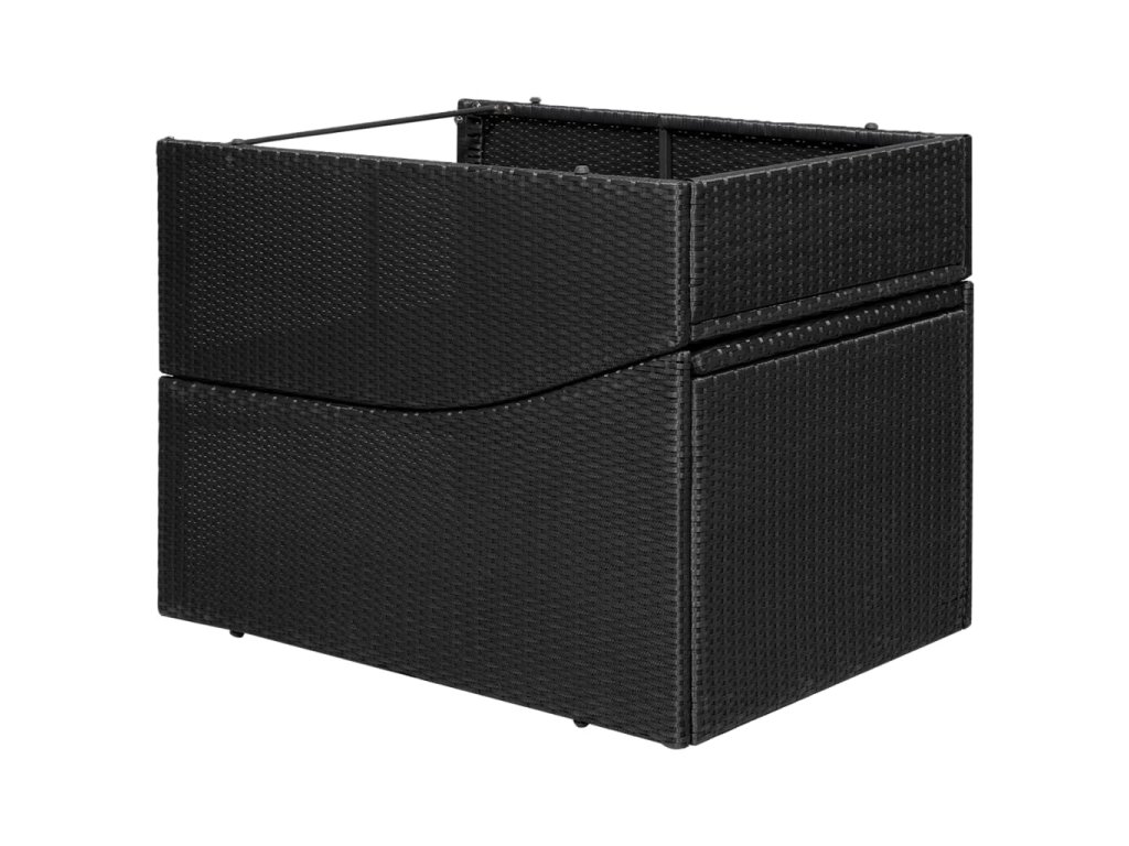 - Materiál: PE (polyetylenový) ratan + ocelový rám s práškovým nástřikem