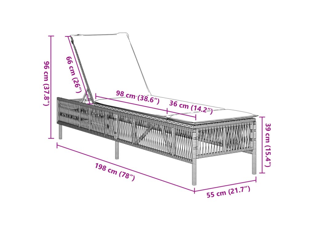 - Nastavitelné opěradlo: Tento venkovní nábytek má opěradlo s 5 nastavitelnými polohami, které vám umožní snadno najít nejpohodlnější a nejvhodnější polohu pro odpočinek.