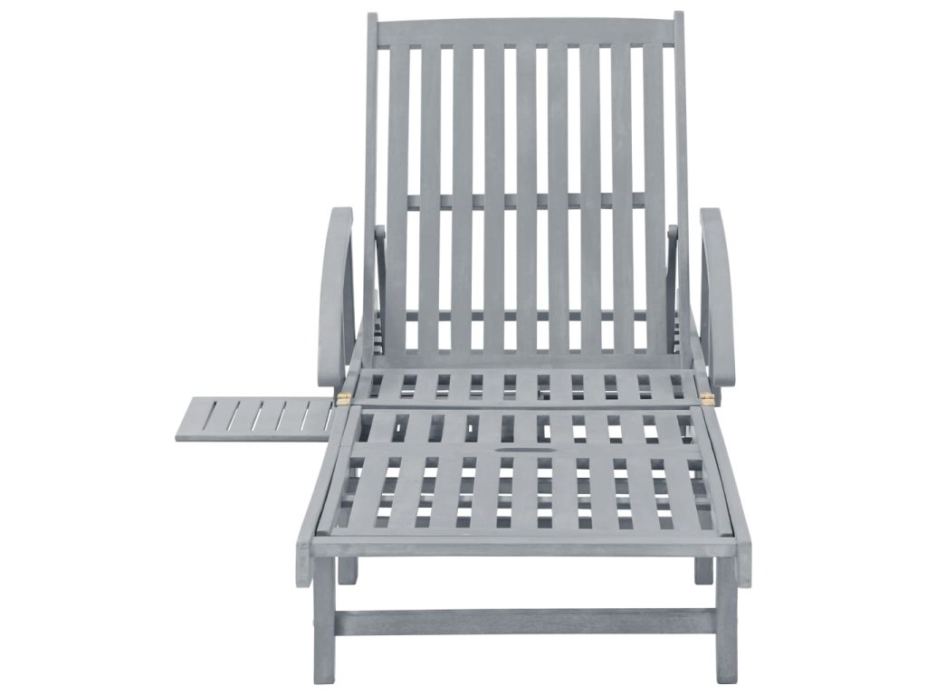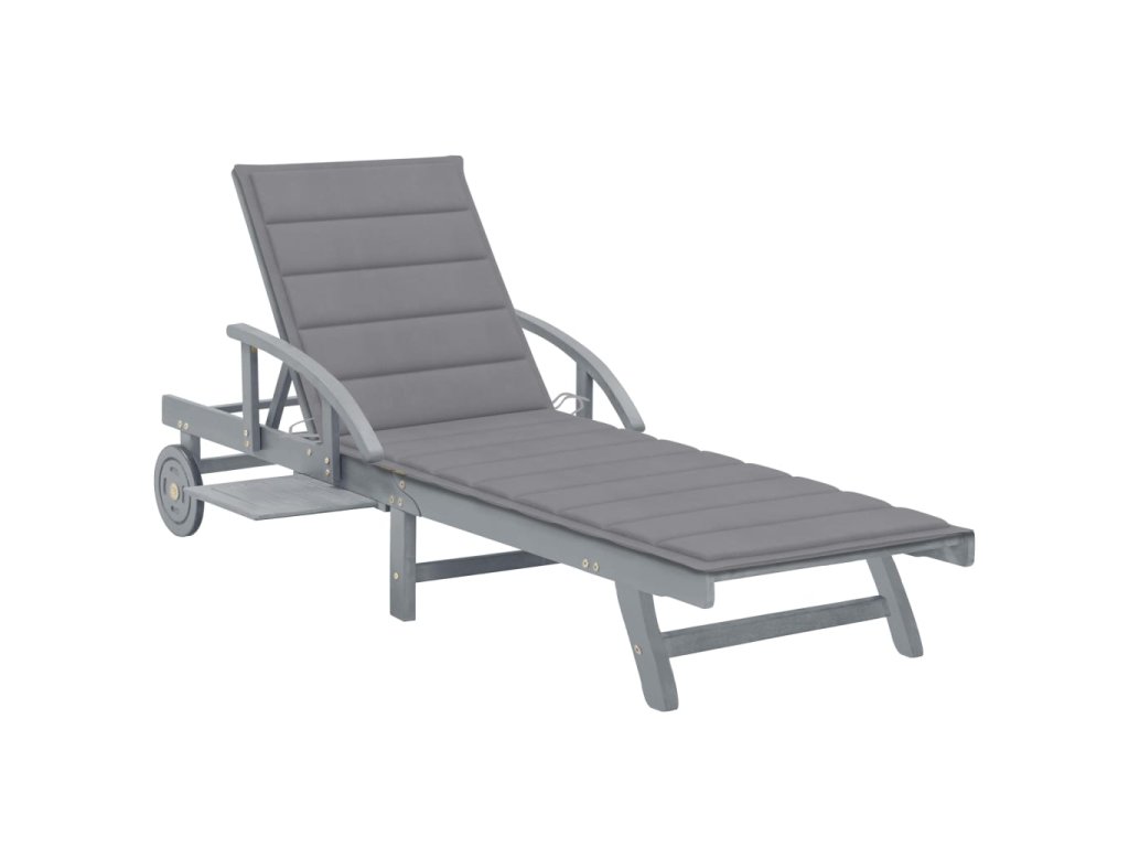 Toto zahradní lehátko je vyrobené z masivního akáciového dřeva s šedou povrchovou úpravou, takže je robustní a stabilní. Opěrky zad a nohou jsou polohovatelné a můžete je snadno nastavit do požadované polohy. Toto zahradní lehátko se 2 kolečky snadno přemístíte, kamkoliv potřebujete. Lehátko je vybavené praktickým výsuvným stolkem, na který můžete položit telefon, sluneční brýle, pití a další drobné předměty. Polštářek přispívá k optimálnímu komfortu během vaší relaxace. Každá poduška je vybavená dvěma páry šňůrek, abyste ji mohli pevně zafixovat k lehátku.