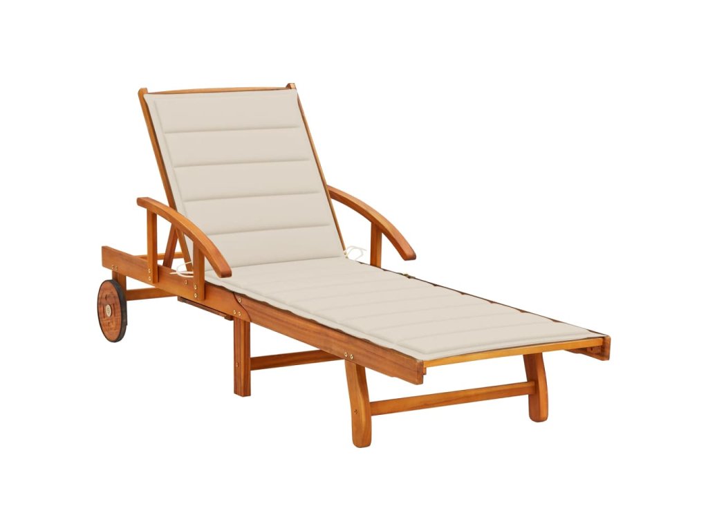 Toto zahradní lehátko je vyrobené z masivního akáciového dřeva, takže je bytelné a stabilní. Zahradní lehátko má 2 kolečka, po kterých se dá snadno přemísťovat. Opěradlo a opěrka nohou jsou nastavitelné, abyste si mohli dřevěné lehátko zajistit v požadované poloze. Výsuvný stoleček vám poslouží k odložení telefonu, slunečních brýlí, nápojů a dalších drobných předmětů. Poduška přináší extra dávku komfortu pro chvíle odpočinku. Každou podušku můžete k lehátku pevně připevnit šesti páry šňůrek.