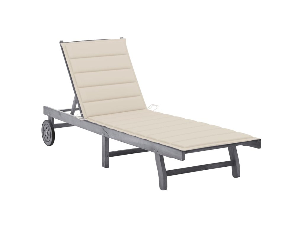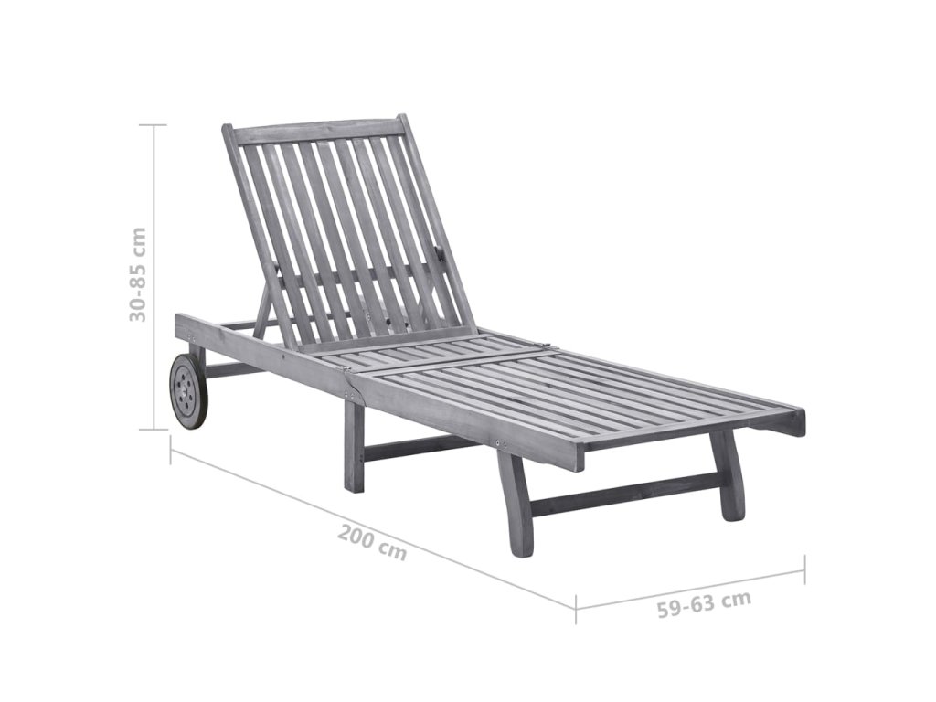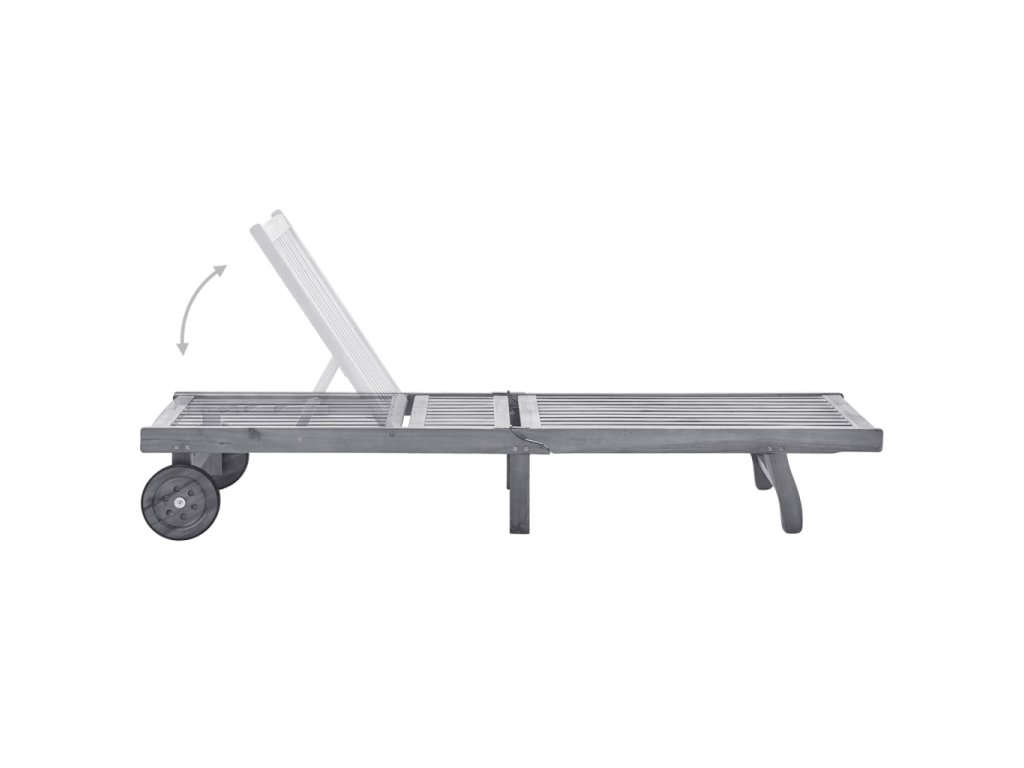 Zahradní lehátko je vyrobené z masivního akáciového dřeva s šedou povrchovou úpravou, takže je robustní a stabilní. Opěrky zad a nohou jsou polohovatelné a můžete si je snadno nastavit do požadované pozice. Opalovací lehátko se 2 kolečky bez námahy přemístíte, kam zrovna potřebujete. Poduška přispívá k optimálnímu komfortu během vaší relaxace.