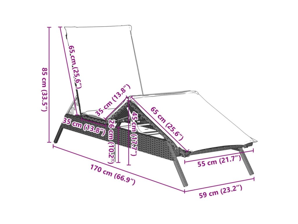 - Nastavitelné opěradlo a opěrka nohou: Tento venkovní nábytek má opěradlo se 4 nastavitelnými polohami a opěrku nohou se 3 nastavitelnými polohami, což vám umožní snadno najít nejpohodlnější a nejvhodnější polohu pro odpočinek.